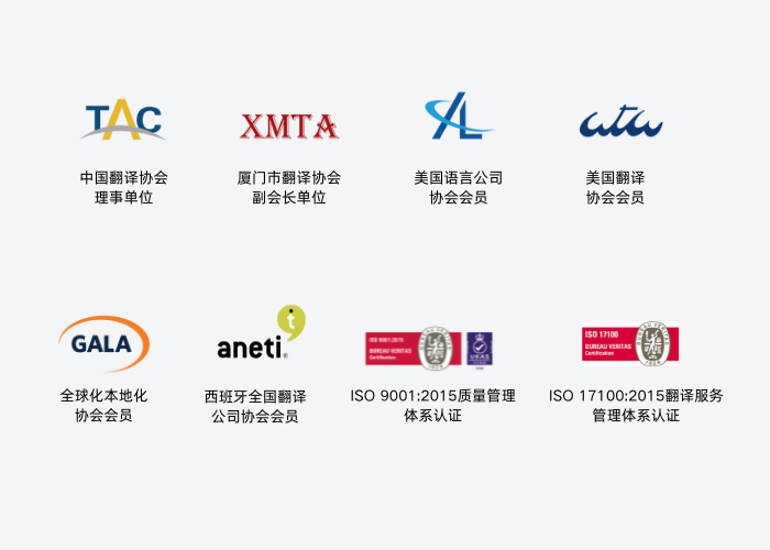 全球翻译百强企业、中国翻译协会理事单位 美国语言公司协会会员、美国翻译协会会员 、日本翻译联盟会员